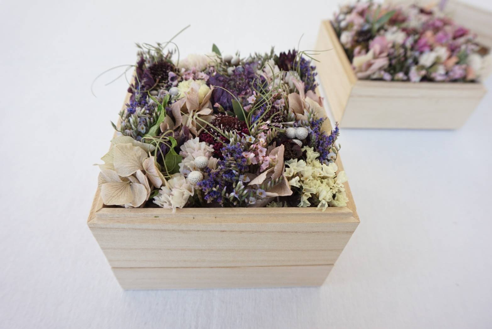 桐箱に華やかなお花をギュッと詰め込んだドライフラワーのフラワーボックスです。